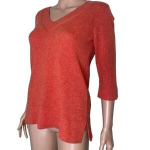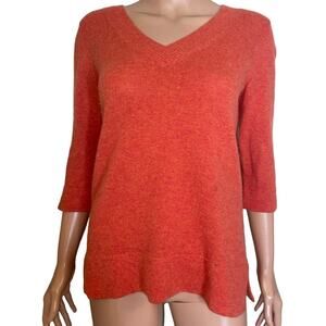 Griffen Cashmere sweater V-neck soft 100% Cashmere, shirt tail hem orange SZ SM