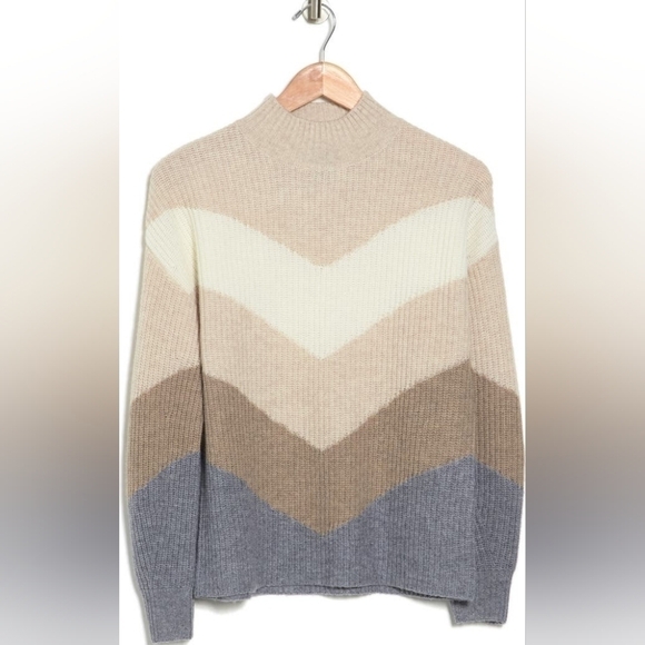 Griffen Chevron Mock Neck Wool & Cashmere Sweater Size XL cream, tan, blue