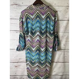 Grifflin Paris Women's Size Med Multicolored Chevron Stretch Sheath Dress Gold