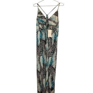 Grifflin Paris Maxi Dress Blue Black Animal Print Size SM NWT