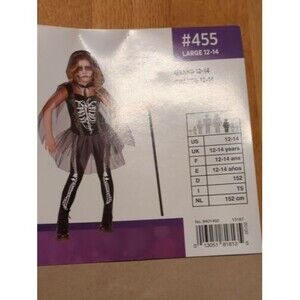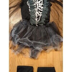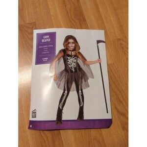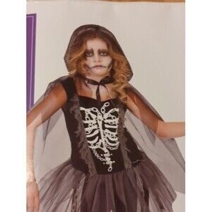 Grim Reaper Girl Large Kids Halloween Costume Skeleton Dress Cape Leggings