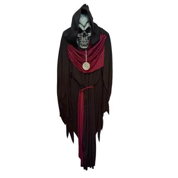 Adult Grim Reaper Skeleton Costume Includes hooded robe, mask, gloves, belt, and medallion. Good condition from smoke free home. #grimreaper #skeleton #halloween #scary #costumes