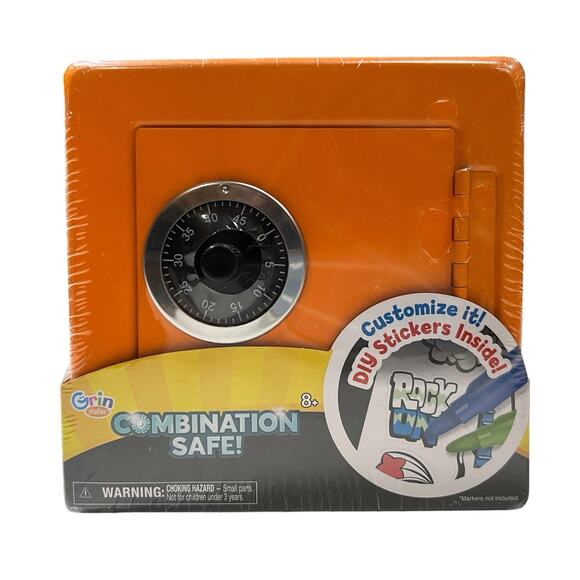 Grin Studios Combination Safe Bank for Kids – Orange Toy Coin Bank with Lock