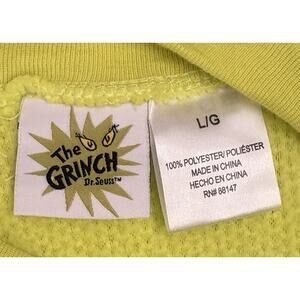 This product is a women's size large green sherpa fleece pullover pajama top featuring the character of the Grinch. The sleeveless design and crew neckline make it comfortable and easy to wear during the winter and fall seasons. Made of 100% polyester fleece fabric, this lightweight garment is machine washable for easy care. The embroidered accents add a festive touch, perfect for cozy nights in. The Grinch brand and green color bring a touch of whimsy to this cozy sleepwear piece. Pit to pit is 20 inches. Top of shoulder to bottom is 24 inches.