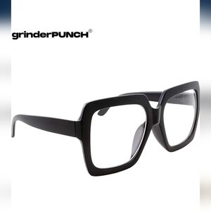 grinderPUNCH XL Black Thick Square Oversized Clear Lens Glasses - Men and Women