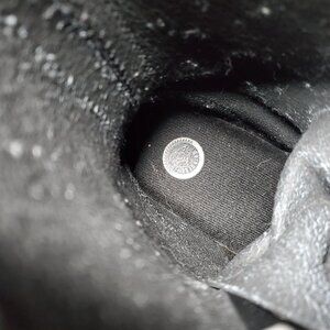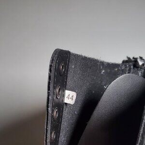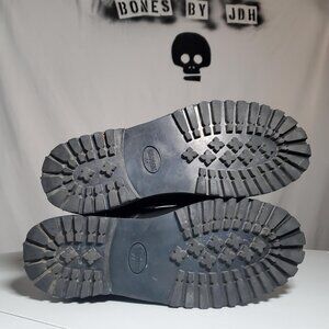 ***Missing pull-on tab (has been cut off - see pic with blue circles) - otherwise excellent used condition - 14-hole Herald black leather and steel toe with Grinder's commando sole - no box- boots weigh 4lbs 4ozs- size EU44
