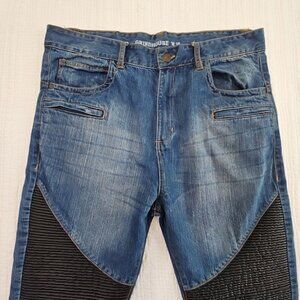 Grindhouse Denim Moto Jeans Men's 38x34 Double Padded Knee Whiskered EUC Cycling