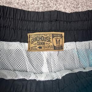 Super cool neon green, blue, black, & white vintage vibe windbreaker shorts. mesh lined, elastic waist and draw string. pockets as shown. Preowned in great condition. Such a cool 80s look!