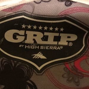 Grip high Sierra back pack it is grey with black pink and white flowers