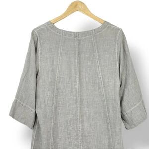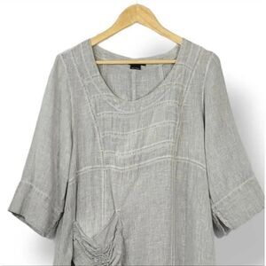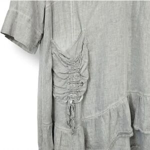 Grizas 100% Linen Asymmetrical Ruffle Hem Tunic/Dress in Light Gray Size Large