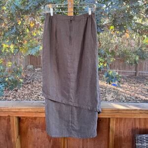 Grizas Sage Green 100% Linen Layered Maxi Skirt Size L 28" Waist