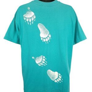 Grizzly Bear Real Trax T Shirt Vintage 80s All Over Print Nature Tee Made In USA Mens Size XL