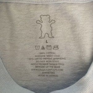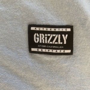Grizzly woven label on bottom right of garment