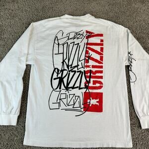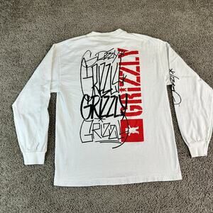 Grizzly Griptape Shirt Mens Medium White Black Long Sleeve Skater Print Casuala