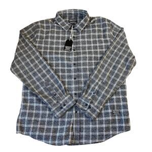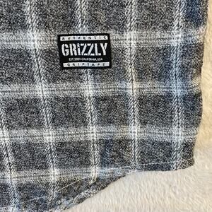 Grizzly Griptape Windowpane Plaid Flannel Shirt Men XL Gray Button Up Aspen NWT