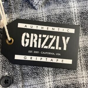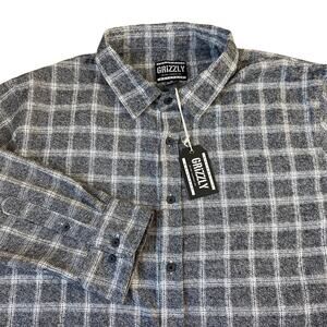 Grizzly Griptape Windowpane Plaid Flannel Shirt Men XL Gray Button Up Aspen NWT