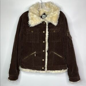 Grizzly Sherpa Lined Snap Button Up Corduroy Jacket Size Large