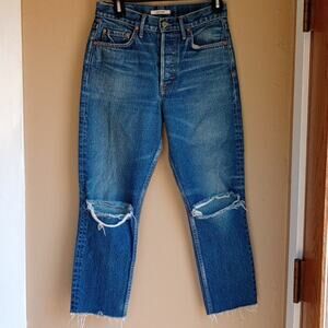 Grlfrnd Boyfriend Style Button Fly Distressed Denim Jeans Size 26