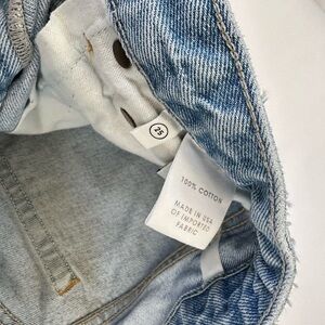 Grlfrnd Denim distressed shorts, size 25. Light wash, distressing on the front and back, raw hem. Button fly. Good condition.