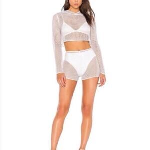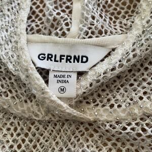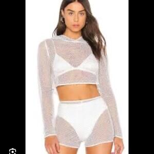 Grlfrnd Disco White Mesh Knit Beaded Hoodie sz M