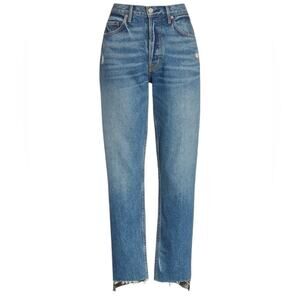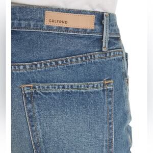 Grlfrnd Helena Crop Button Fly Jeans size 28 Raw Hem in excellent like new condition. Actual measurements laying flat waist 15 1/2 inches across and inseam 26 inches and rise 11 inches