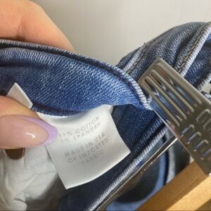 Features: button fly, medium wash, distressed, stretch, high rise waisted