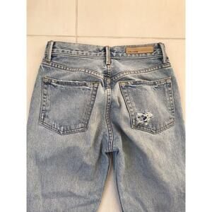 Grlfrnd Karolina High Waist Distressed Cut Off Straight Leg Denim Jeans