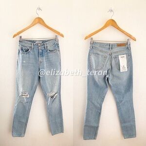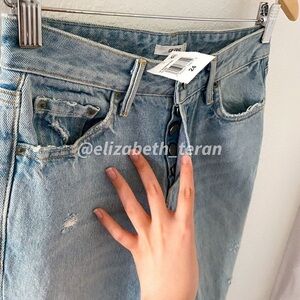 Light fading and destroyed detail. Button fly. 5-pocket design.