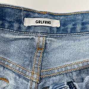 Grlfrnd Light Wash Blue 'Wear Me Out' High Rise Distressed Denim Shorts Size 26