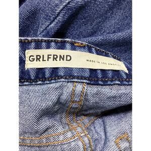 Grlfrnd 'Melanie' Blue High Rise Boot Cut Size 25: zip fly with button closure.