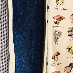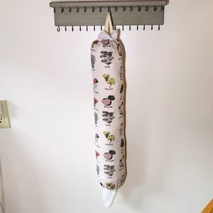 Grocery Bag Holder Plastic Bag Organizer, Navy, Gingham, Mushrooms, Cottage Core
