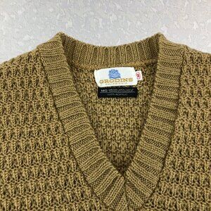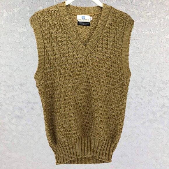 Grodins California Vintage Gold Knit Vest Unisex Preppy Retro V-Neck Pullover