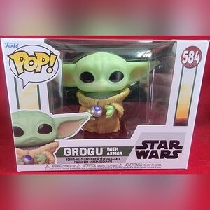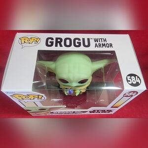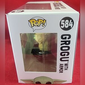 brand new 2022 Mandalorian grogu with Armor pop. pop has grogu with his chainmail on. pop is in near perfect condition and will be shipped in a compatible pop protector.