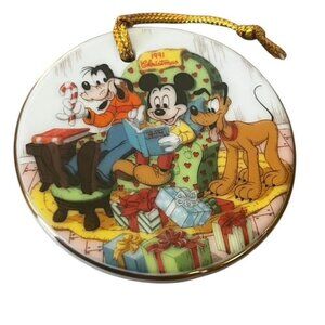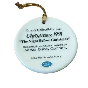 Grolier Collectibles 2 1/2" diameter ceramic disc "The Night Before Christmas" Christmas 1991 ornament in excellent preowned condition. (M1044)