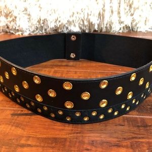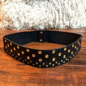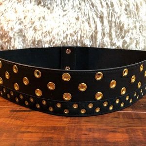 Black & Gold Tone Grommet Steampunk Runway CHIC Waist Snap Belt sz Medium