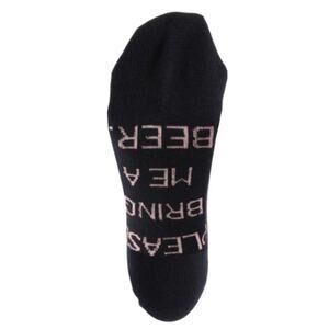 Blue socks with pink dots, the bottom of feet says - "If you can read this." "Please bring me a beer."