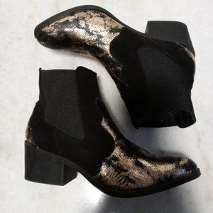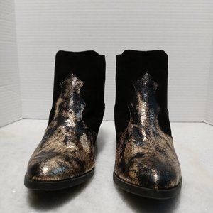 Groove Candace Faux Leather Gold Leaf Cowboy Boots Booties Ankle Boots Women Size 7 Statement Fall Boot