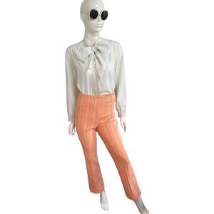 Groovy 1960s / 1970s Vintage One of a Kind Orange Textured Stripe Ankle Pants