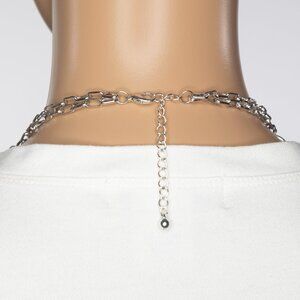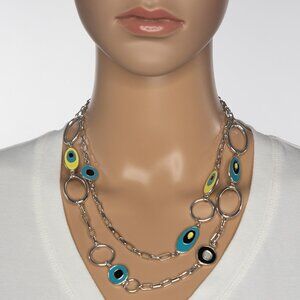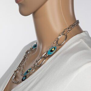 Groovy 70's Vibe Teal Black Yellow Necklace Faux Silver Chain