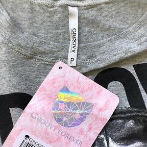 Groovy Forever Womens T-Shirt Tunic Cat Graphic Sleeveless Mesh Hem Gray Size S NWT