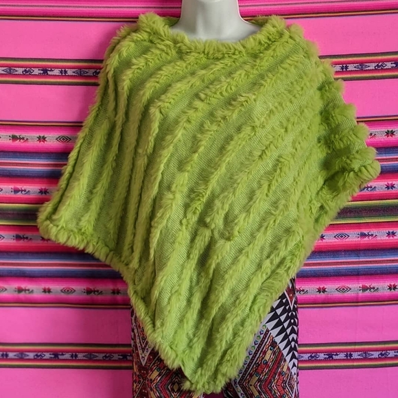 Soft Rabbit Fur Lime green Pancho