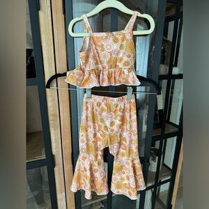 Groovy flower set 2 piece flare leggings pants crop top baby toddler girl floral