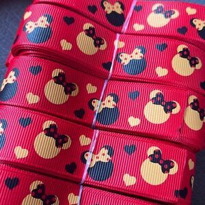 Grosgrain Ribbon 7/8” 5 yards 5/$20 Minnie Mouse bow polka dots red NEW hearts