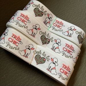 Grosgrain Ribbon 7/8” 5 yards 5/$20 Paris French France Tres Chic poodle ooh la