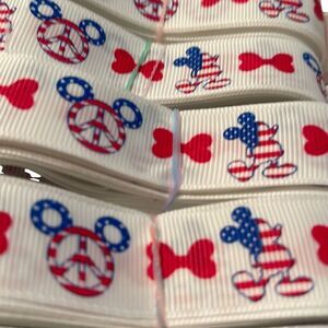 Grosgrain printed Ribbon 7/8” NEW 5 yards Mickey Mouse patriotic USA peace sign