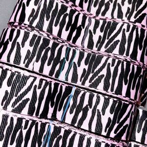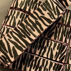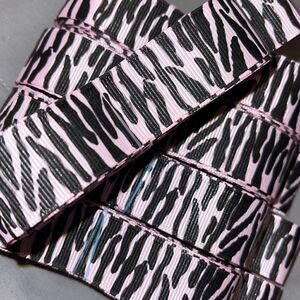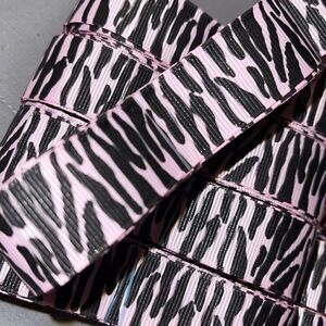 Grosgrain printed Ribbon 7/8” NEW 5 yards light baby pink black zebra stripe