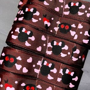 Grosgrain printed Ribbon 7/8” NEW 5 yards Minnie Mouse brown skull Jolly Roger