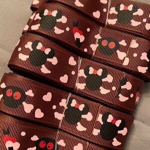 Grosgrain printed Ribbon 7/8” NEW 5 yards Minnie Mouse brown skull Jolly Roger