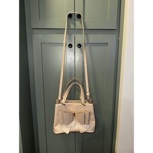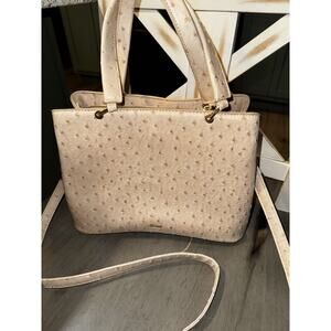 The Grossi Bowtie Purse is a stylish and unique accessory for women, crafted from faux ostrich leather in a rich brown color. This crossbody bag features a sleek design with a wide 10-inch front, a height of 8 inches, and a depth of 5 inches, making it the perfect size for carrying essentials. The distinctive bowtie detail adds a touch of sophistication to this fashionable handbag, making it a must-have for any outfit.