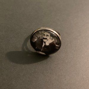 This is an adjustable ring. The image is 15mm in diameter. Handmade in Cleveland, Ohio
